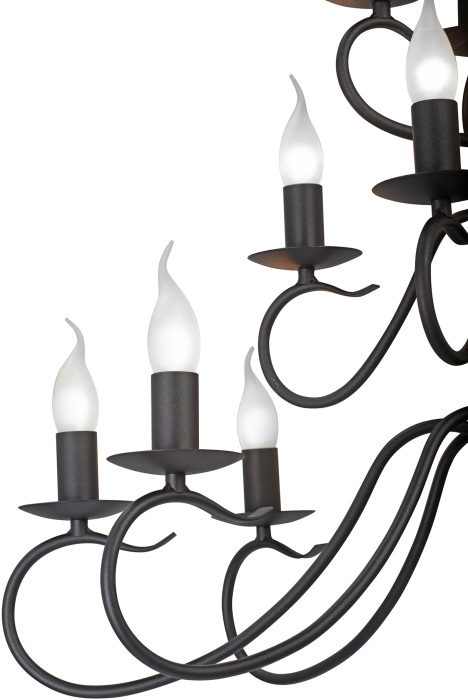 Осветительный прибор выполнен в стиле Замковый. Используются лампочки цоколя E14 мощностью 640 Вт, количеством 16 шт. Цвет модели V1859-1/16: Чёрный.