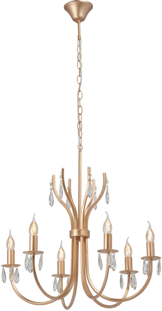 Осветительный прибор выполнен в стиле Замковый. Используются лампочки цоколя E14 мощностью 240 Вт, количеством 6 шт. Цвет модели V1864-8/6: Золотой.