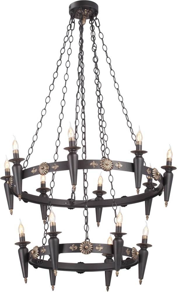 Осветительный прибор разработан в стиле Замковый. Подходят лампы цоколя E14 мощностью 560 Вт, количеством 14 ед. Основной цвет модели V1870-1/8+6: Чёрный.