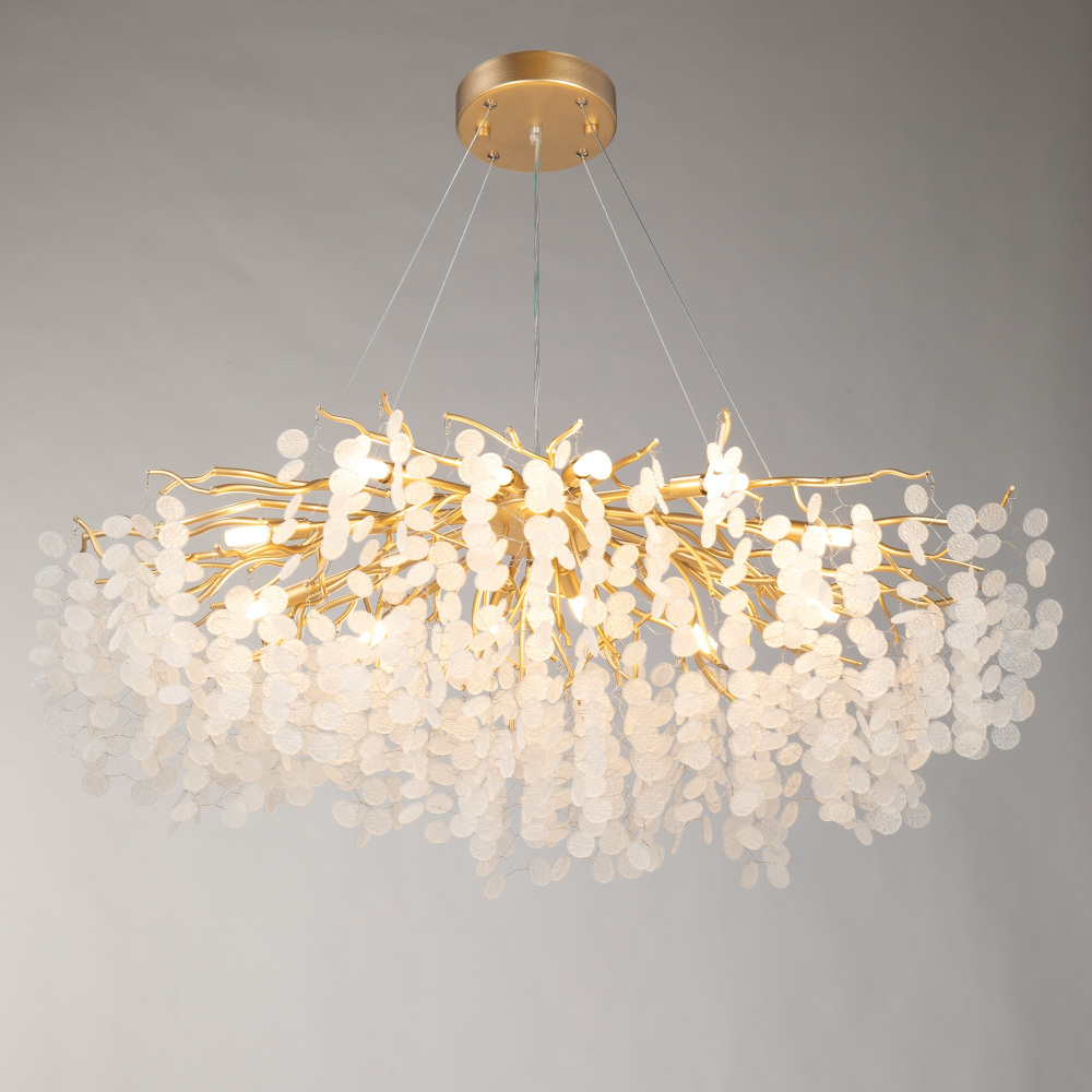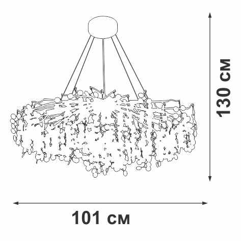 Осветительный прибор выполнен в стиле Арт-Деко. Применяются лампочки цоколя G9 мощностью 520 Вт, количеством 13 шт.