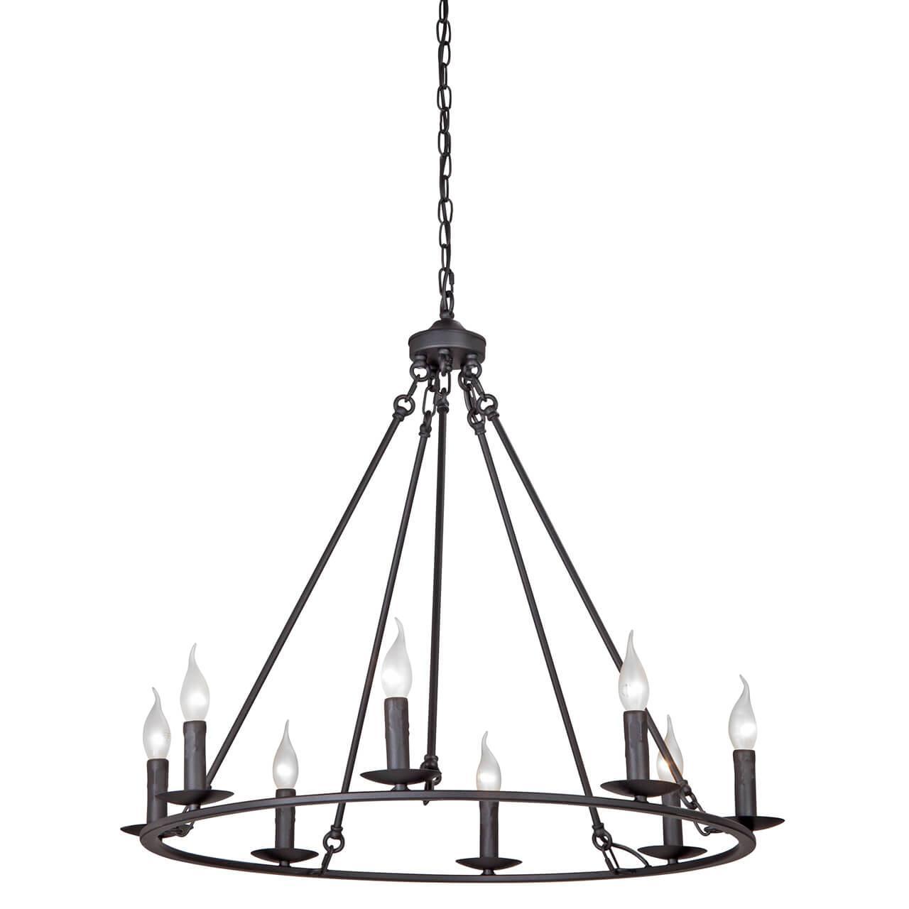 Осветительный прибор создан в стиле Кантри. Применяются лампы цоколя E14 мощностью 320 Вт, в количестве 8 шт. Основной цвет модели V3756-1/8: Чёрный.