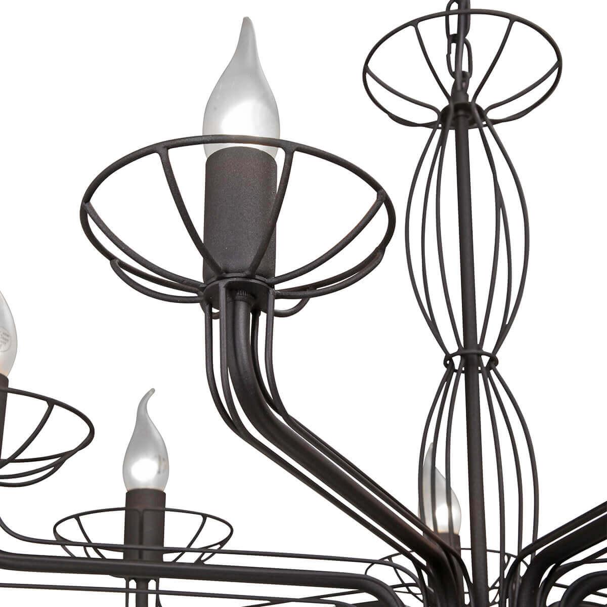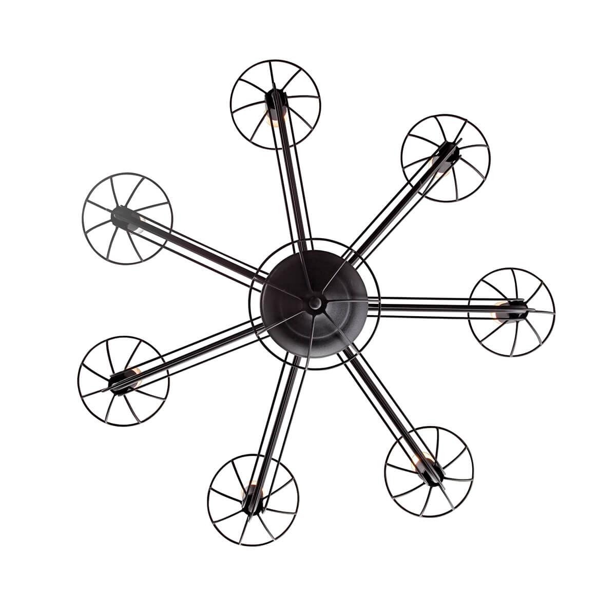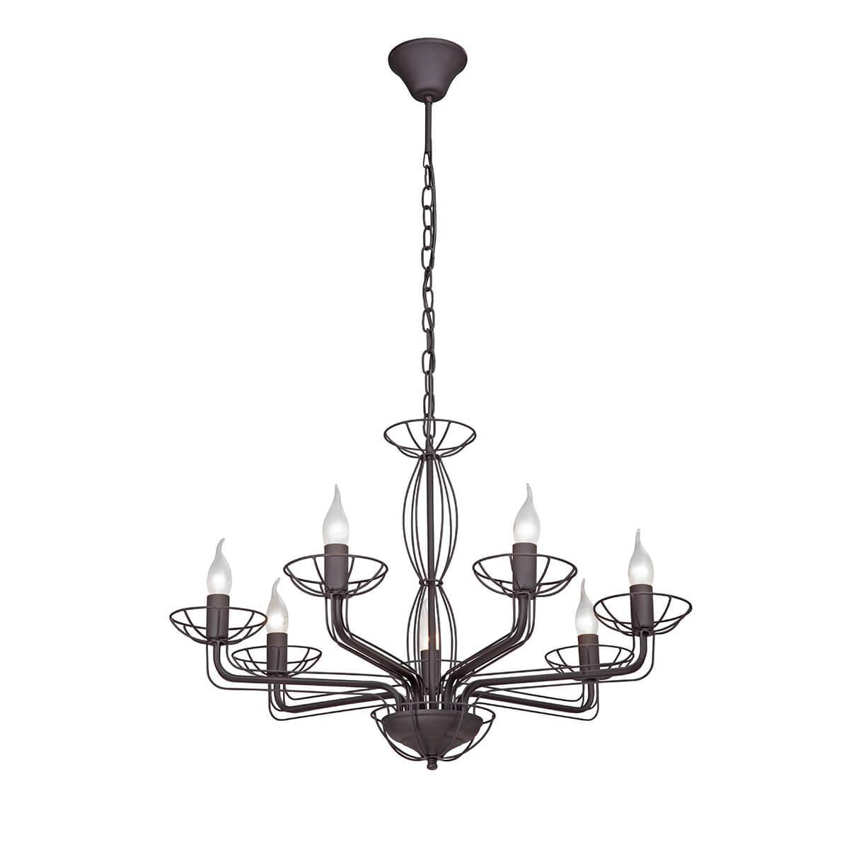 Осветительный прибор выполнен в стиле Арт-Деко. Используются лампы цоколя E14 мощностью 280 Вт, в количестве 7 шт. Основной цвет модели V4877-1/7: Чёрный.