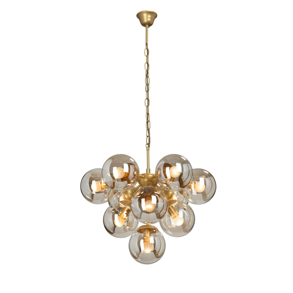 Осветительный прибор сделан в стиле Арт-Деко. Применяются лампы цоколя E14 мощностью 400 Вт, количеством 10 ед. Основной цвет модели V4963-8/10: Янтарный.