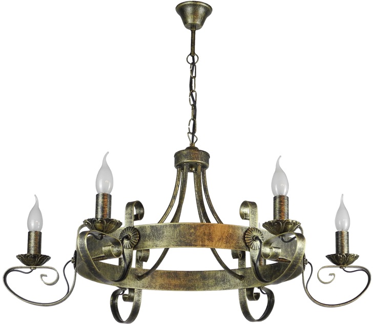 Осветительный прибор разработан в стиле Замковый. Используются лампы цоколя E14 мощностью 240 Вт, в количестве 6 шт. Основной цвет модели Валентина-6: Бронза.