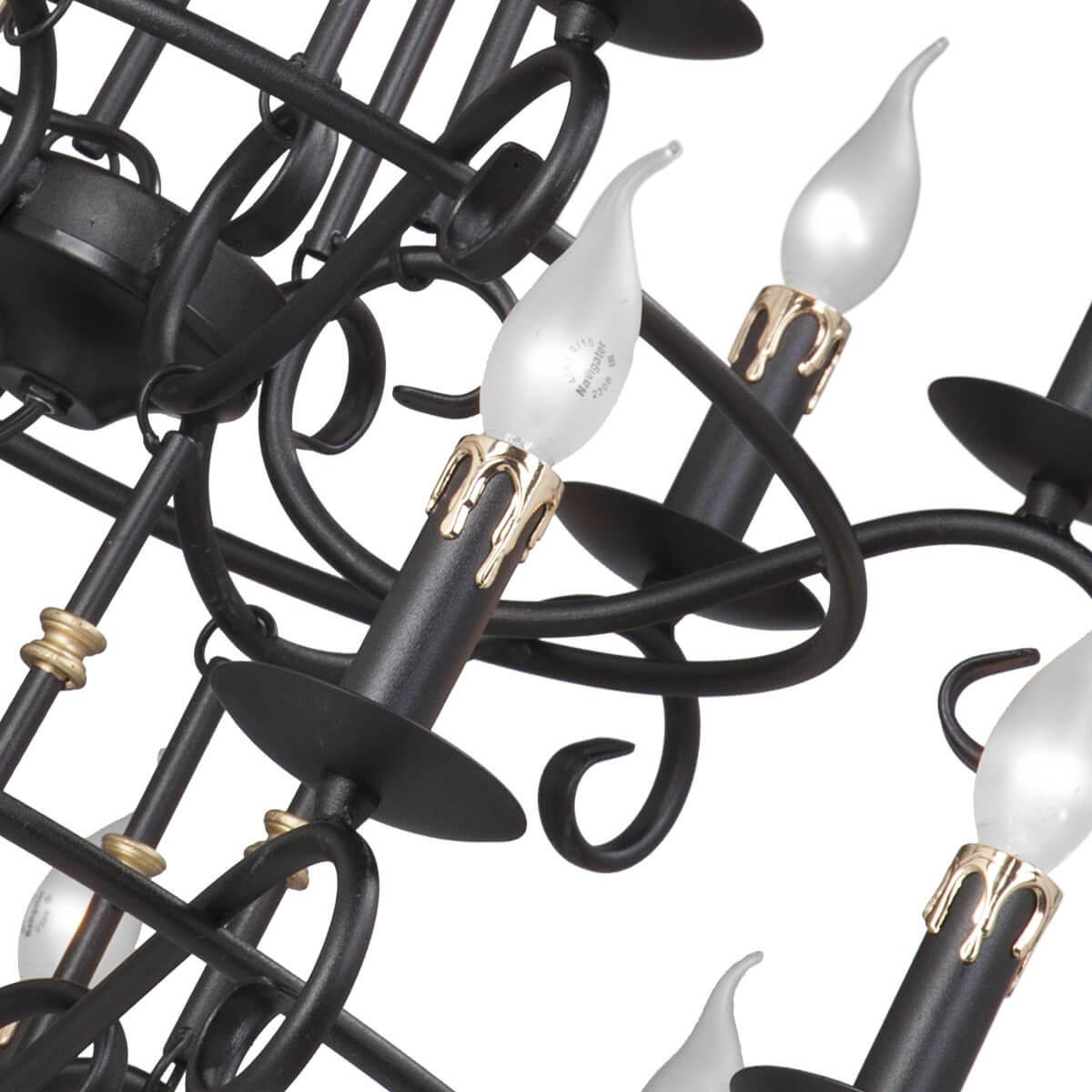 Осветительный прибор выполнен в стиле Винтажный. Используются лампы цоколя E14 мощностью 1080 Вт, в количестве 18 шт. Основной цвет модели V1039/12+6: Чёрный.