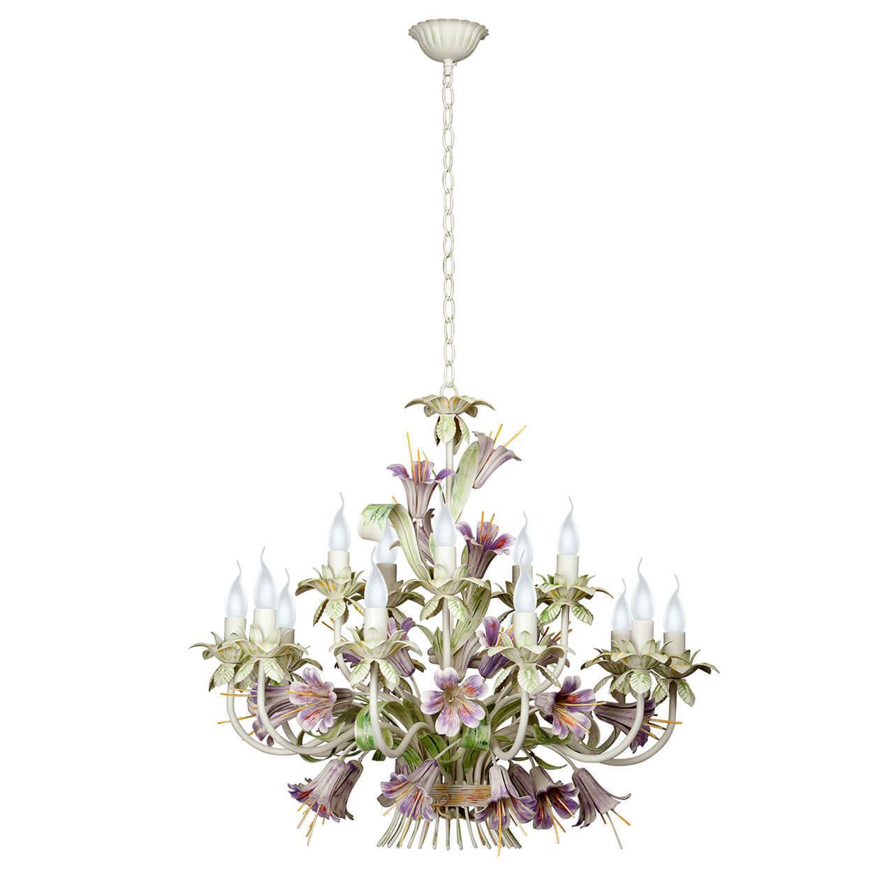 Осветительный прибор выполнен в стиле Прованс. Используются лампочки цоколя E14 мощностью 900 Вт, количеством 15 шт. Цвет модели V1116/15: Зелёный,Разноцветный,Розовый.