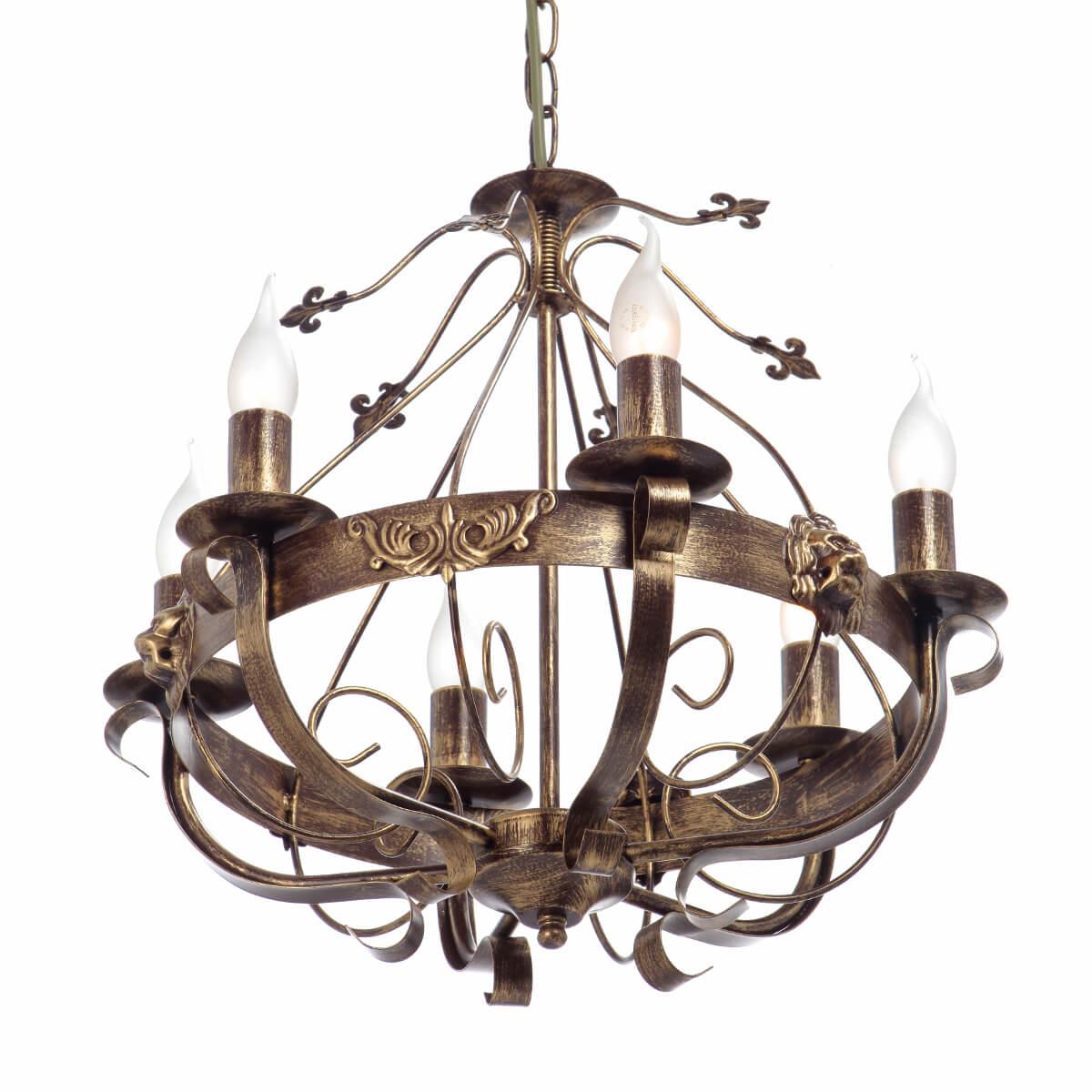 Осветительный прибор создан в стиле Замковый. Используются лампочки цоколя E14 мощностью 360 Вт, количеством 6 шт. Цвет модели V1161/6: Коричневый.