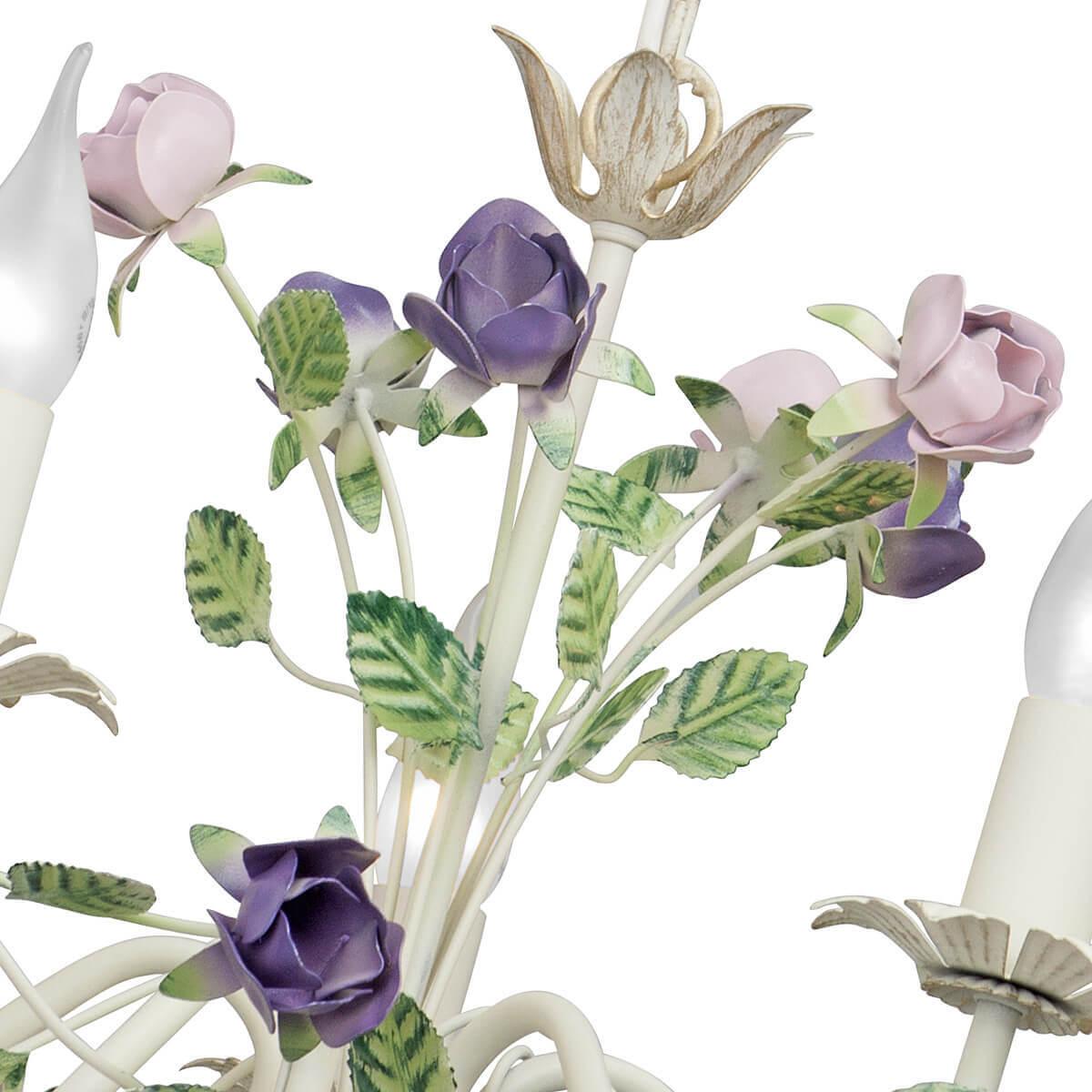 Осветительный прибор сделан в стиле Прованс. Применяются лампы цоколя E14 мощностью 300 Вт, количеством 5 ед. Основной цвет модели V1184/5: Зелёный,Разноцветный,Розовый.