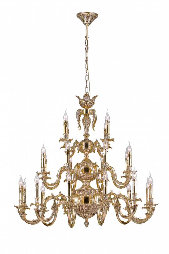 Осветительный прибор выполнен в стиле Ампир. Подходят лампы цоколя E14 мощностью 960 Вт, в количестве 24 шт. Основной цвет модели Vivaro E 1.1.24 CG: Золотой.