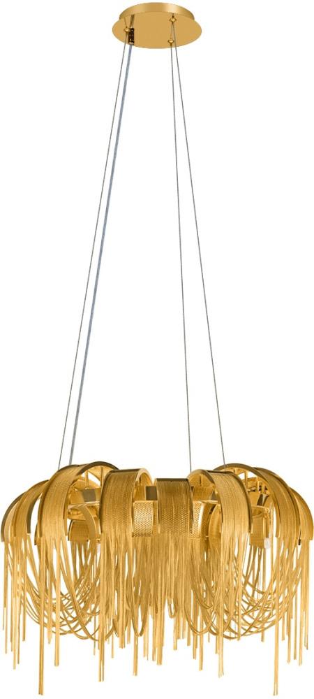 Осветительный прибор сделан в стиле Арт-Деко. Используются лампочки цоколя G9 мощностью 200 Вт, в количестве 5 ед. Цвет модели 10404/650 GD: Золотой.