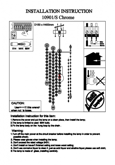 Осветительный прибор создан в стиле Модерн. Используются лампочки с цоколем E14 мощностью 60 Вт, в количестве 1 шт. Основной цвет модели 10901/S gold: Прозрачный.