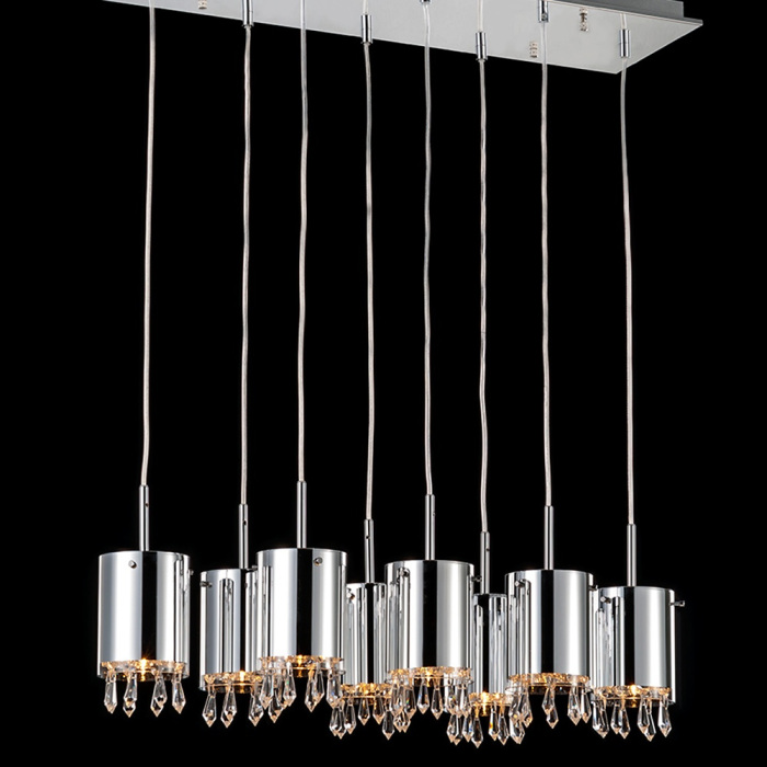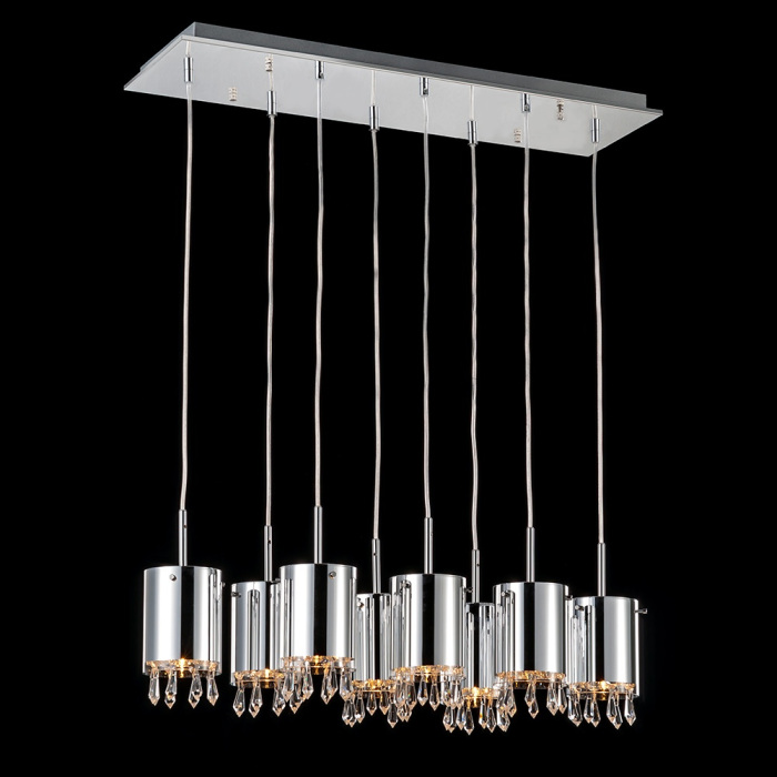 Осветительный прибор выполнен в стиле Современный. Используются лампы с цоколем G9 мощностью 320 Вт, количеством 8 шт. Цвет модели MD1303802-8A: Хром.