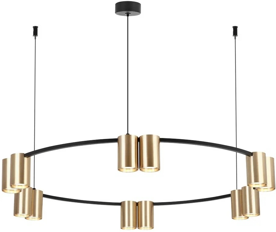 Осветительный прибор разработан в стиле Модерн. Применяются лампочки цоколя GU10 мощностью 600 Вт, в количестве 12 ед. Цвет модели 471-403-12: Золотой.