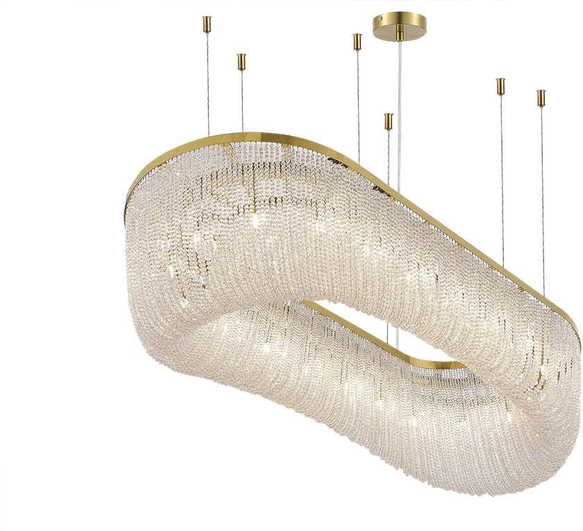 Осветительный прибор разработан в стиле Арт-Деко. Задействуются лампы цоколя G9 мощностью 800 Вт, в количестве 20 шт.