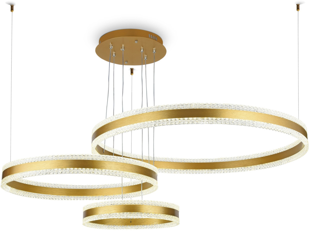 Осветительный прибор разработан в стиле Современный. Задействуются лампочки цоколя LED мощностью 245 Вт, количеством 3 шт. Цвет модели FA6203: Золотой.