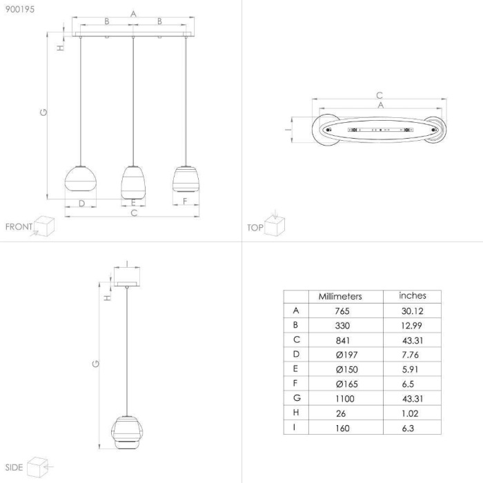 Осветительный прибор разработан в стиле Модерн. Задействуются лампы с цоколем E27 мощностью 120 Вт, количеством 3 шт. Цвет модели 900195: Прозрачный,Серый.