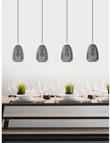 Осветительный прибор сделан в стиле Хай-тек. Подходят лампочки цоколя E27 мощностью 160 Вт, в количестве 4 ед. Цвет модели 98616: Прозрачный,Серый.