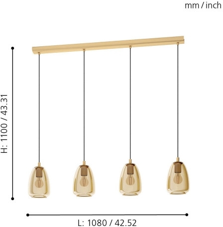 Подвесной светильник 98649 производится брендом Eglo, которая относится к коллекции Alobrase. Габаритные параметры: длина 1080 мм, высота 1100 мм, ширина 150 мм. Светильники Eglo 98649 выполнены из высококачественных и прочных материалов: металл, плафон - стекло.
