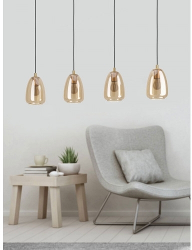 Осветительный прибор разработан в стиле Контемпорари. Применяются лампы цоколя E27 мощностью 160 Вт, в количестве 4 шт. Основной цвет модели 98649: Янтарный.