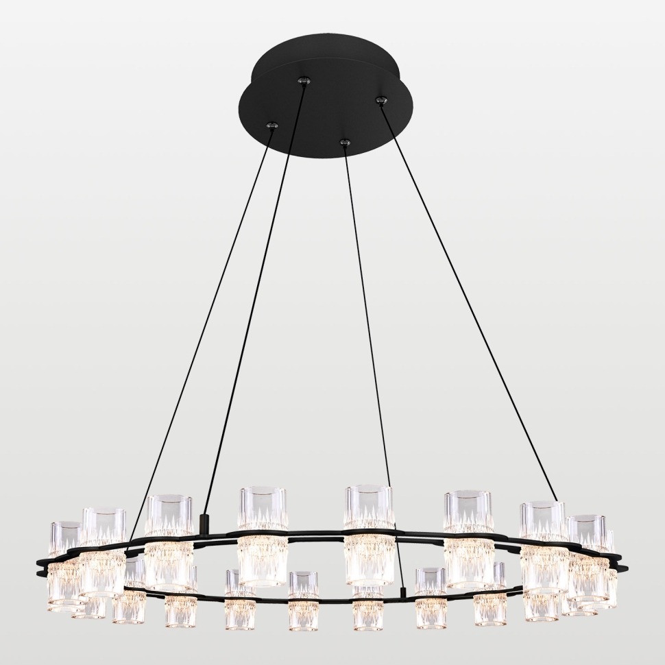 Осветительный прибор разработан в стиле Модерн. Задействуются лампочки цоколя LED мощностью 92 Вт, количеством 1 шт. Цвет модели LSP-7255: Прозрачный,Чёрный.