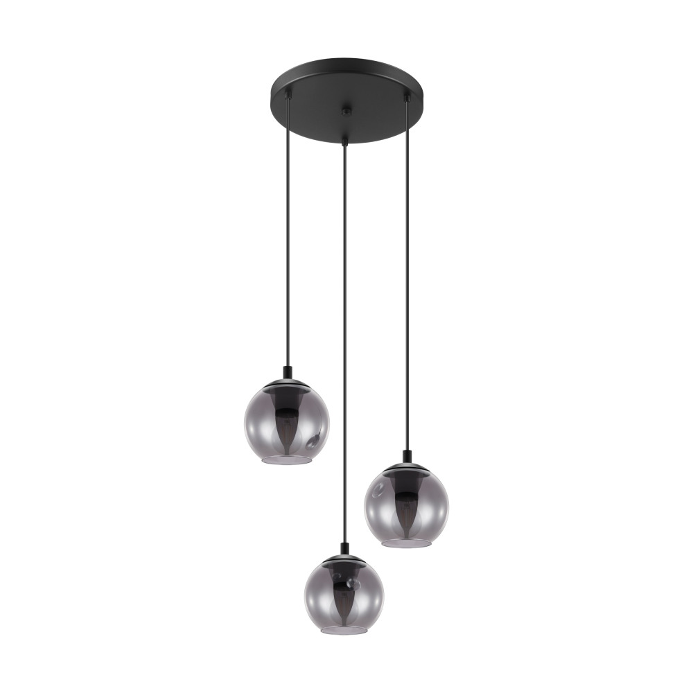 Осветительный прибор выполнен в стиле Модерн. Задействуются лампочки цоколя E27 мощностью 120 Вт, количеством 3 шт. Цвет модели 98653: Прозрачный,Чёрный.