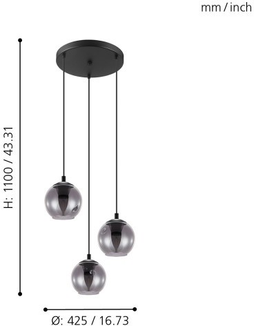 Подвесной светильник 98653 от бренда Eglo и принадлежит коллекции Ariscani. Габаритные размеры: высота 1100 мм, диаметр 425 мм. Светильники Eglo 98653 выполнены из высококачественных и прочных материалов: металл, плафон - стекло.