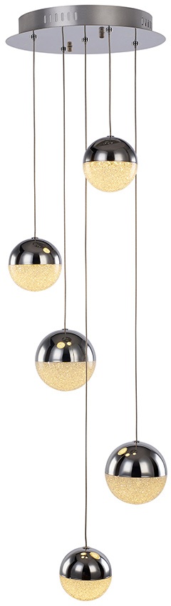 Осветительный прибор создан в стиле Модерн. Применяются лампы с цоколем LED мощностью 120 Вт, в количестве 5 ед. Цвет модели MD14003057-5A: Прозрачный,Хром.