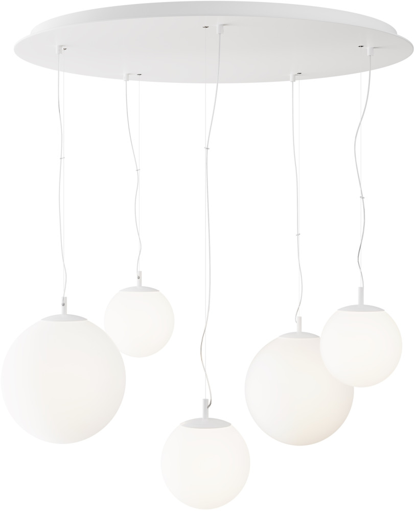 Осветительный прибор создан в стиле Модерн. Применяются лампочки цоколя E27 мощностью 200 Вт, в количестве 5 ед. Цвет модели MOD321PL-05W1: Белый.