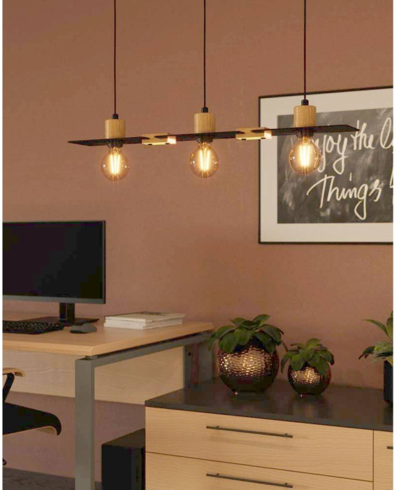 Подвесной светильник Bramerton 43752 Eglo черный, рожковый, в стиле лофт, деревянный
