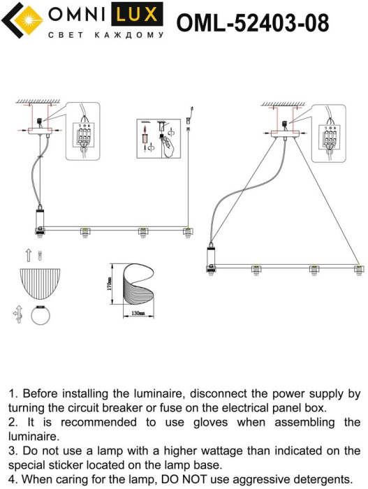 Осветительный прибор разработан в стиле Модерн. Подходят лампы с цоколем G9 мощностью 40 Вт, количеством 8 шт. Цвет модели OML-52403-08: Белый.