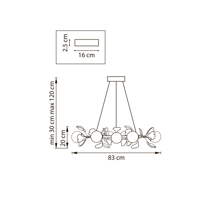 Осветительный прибор выполнен в стиле Модерн. Используются лампочки с цоколем G9 мощностью 72 Вт, в количестве 12 шт.