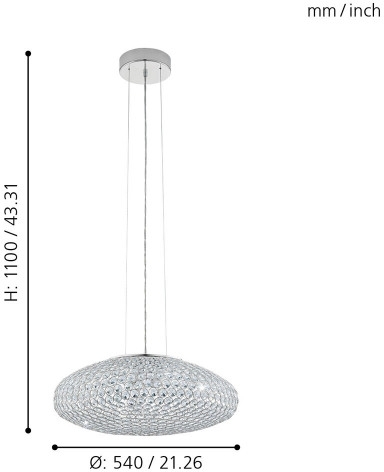 Подвесной светильник 95287 изготавливается брендом Eglo, которая относится к коллекции Clemente. Габаритные размеры: высота 1100 мм, диаметр 540 мм. Светильники Eglo 95287 выполнены из высококачественных и прочных материалов: металл, плафон - хрусталь.
