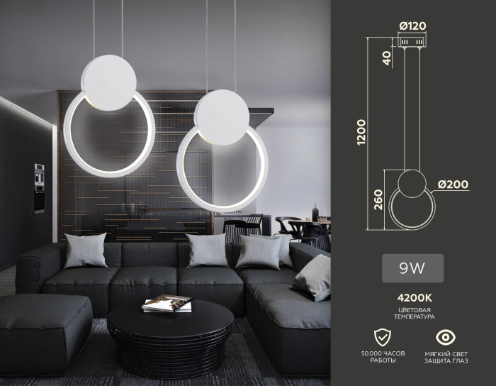 Осветительный прибор сделан в стиле Современный. Применяются лампы с цоколем LED мощностью 9 Вт.