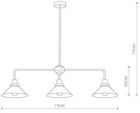 Осветительный прибор создан в стиле Лофт. Задействуются лампочки с цоколем E27 мощностью 180 Вт, в количестве 3 шт.