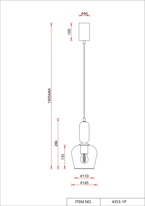 Осветительный прибор создан в стиле Модерн. Подходят лампочки цоколя E27 мощностью 40 Вт, в количестве 1 ед. Цвет модели 4353-1P: Прозрачный,Серый.