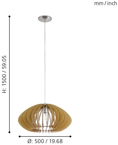 Подвесной светильник 95257 – это продукция бренда Eglo и принадлежит коллекции Cossano. Размеры: высота 1100 мм, диаметр 500 мм. Светильники Eglo 95257 изготовлены с использованием высококачественных и прочных материалов, таких как: металл, плафон - дерево.