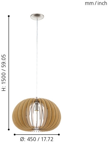 Подвесной светильник 94767 от бренда Eglo, относящаяся к коллекции Cossano. Габаритные параметры: высота 1100 мм, диаметр 450 мм. Светильники Eglo 94767 изготовлены с использованием высококачественных и прочных материалов, таких как: металл, плафон - дерево.