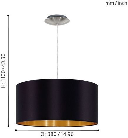 Подвесной светильник 31599 от бренда Eglo, относящаяся к коллекции Maserlo. Габаритные параметры: высота 1100 мм, диаметр 380 мм. Светильники Eglo 31599 изготовлены с использованием высококачественных и прочных материалов, таких как: металл, плафон - Ткань.