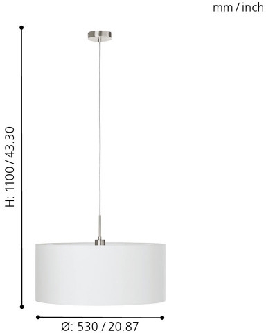 Подвесной светильник 31575 производится брендом Eglo, относящаяся к коллекции Pasteri. Габаритные параметры: высота 1100 мм, диаметр 530 мм. Светильники Eglo 31575 изготовлены с использованием высококачественных и прочных материалов, таких как: металл, плафон - Ткань.