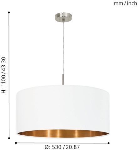 Подвесной светильник 95045 производится брендом Eglo, относящаяся к коллекции Pasteri. Габаритные размеры: высота 1100 мм, диаметр 530 мм. Светильники Eglo 95045 изготовлены с использованием высококачественных и прочных материалов, таких как: металл, плафон - Ткань.