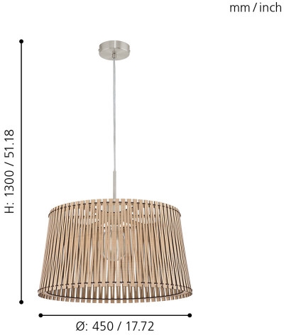 Подвесной светильник 96193 изготавливается брендом Eglo, относящаяся к коллекции Sendero. Габариты: высота 1100 мм, диаметр 450 мм. Светильники Eglo 96193 изготовлены с использованием высококачественных и прочных материалов, таких как: металл, плафон - дерево.