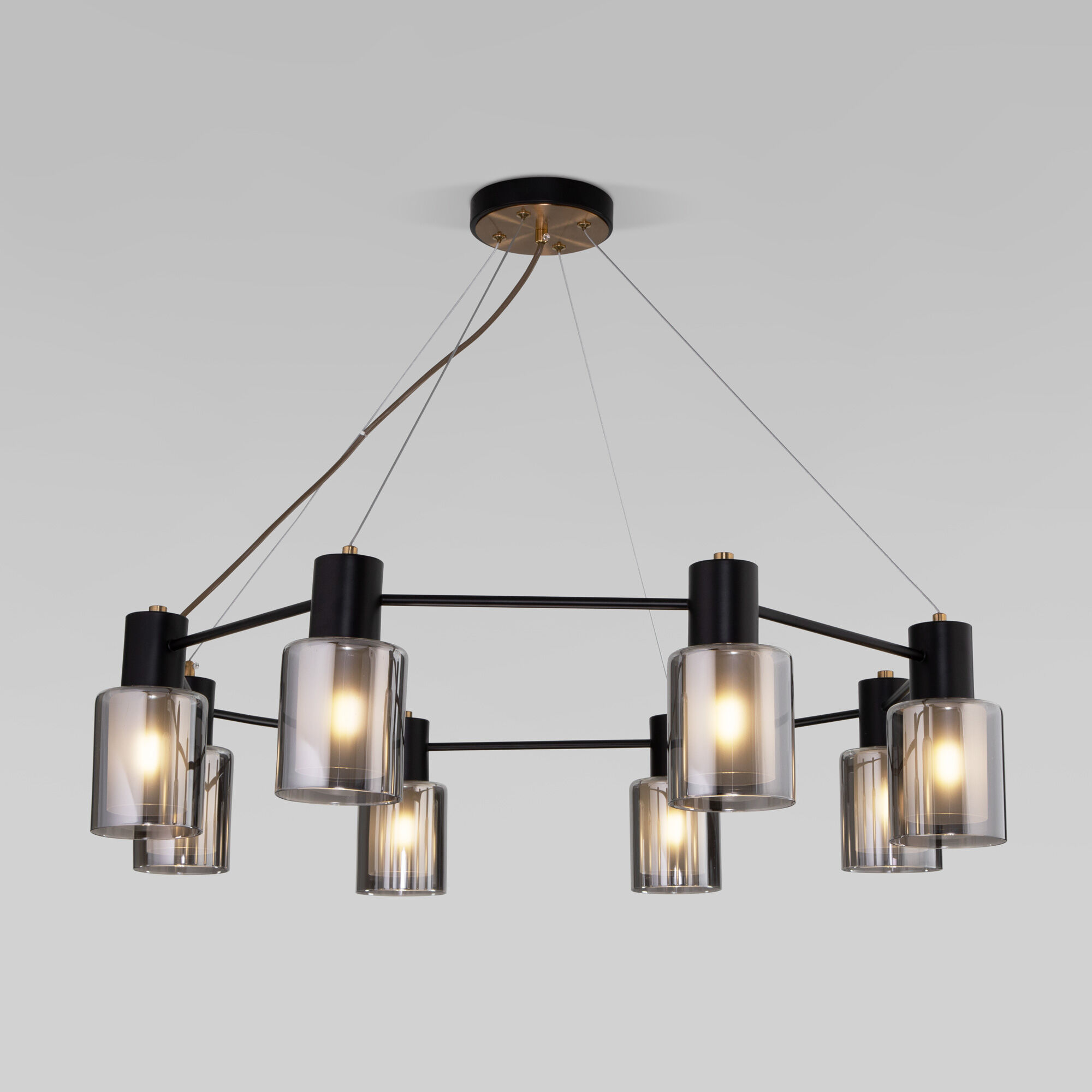 Осветительный прибор разработан в стиле Лофт. Подходят лампочки цоколя E14, количеством 8 шт. Цвет модели a065300: Прозрачный,Серый.