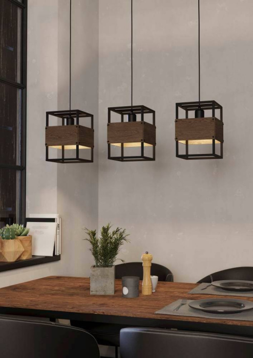 Осветительный прибор создан в стиле Лофт. Задействуются лампочки с цоколем E27 мощностью 120 Вт, количеством 3 ед. Основной цвет модели 43805: Коричневый.