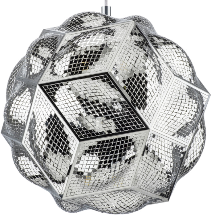 Осветительный прибор создан в стиле Арт-Деко. Применяются лампы с цоколем G9 мощностью 240 Вт, количеством 6 шт.