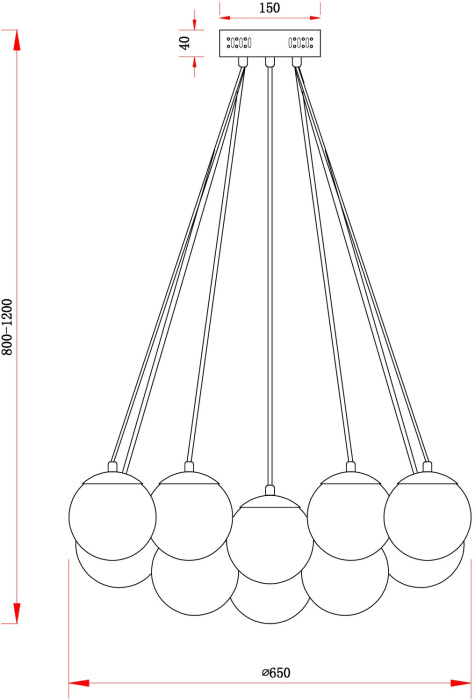 Осветительный прибор создан в стиле Модерн. Применяются лампочки цоколя E27 мощностью 1140 Вт, количеством 19 шт.