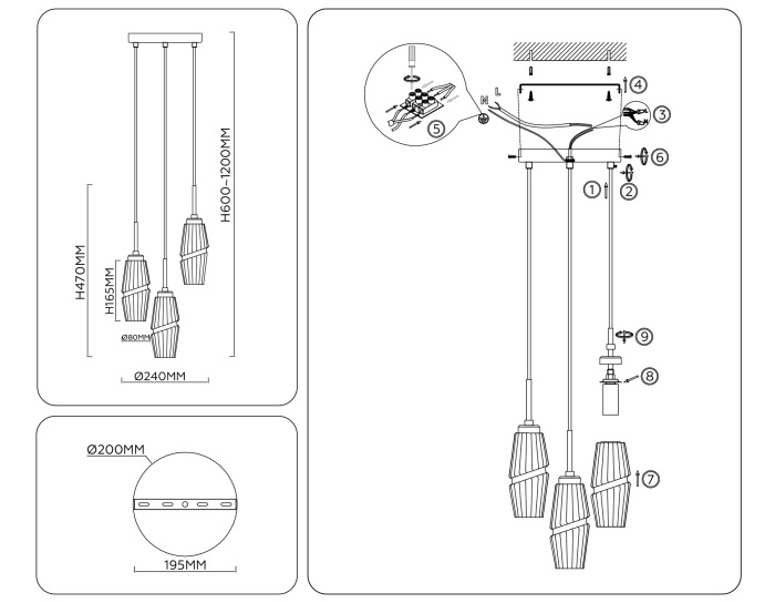 Осветительный прибор выполнен в стиле Модерн. Подходят лампочки цоколя E14 мощностью 120 Вт, количеством 3 шт. Цвет модели LH55210: Прозрачный.