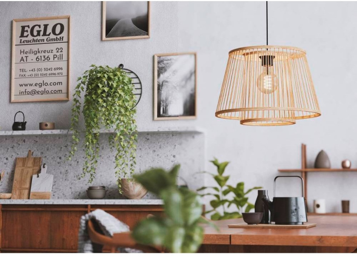 Подвесной светильник 43852 производится брендом Eglo, относящаяся к коллекции HYKEHAM. Габариты: высота 1100 мм, диаметр 380 мм. Светильники Eglo 43852 изготовлены с использованием высококачественных и прочных материалов, таких как: металл, плафон - дерево.