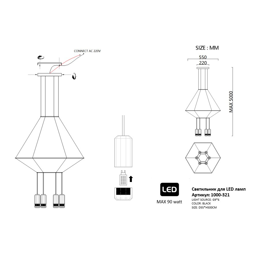 Осветительный прибор сделан в стиле Индустриальный. Применяются лампочки с цоколем G9 мощностью 240 Вт. Основной цвет модели 84532-22: Чёрный.