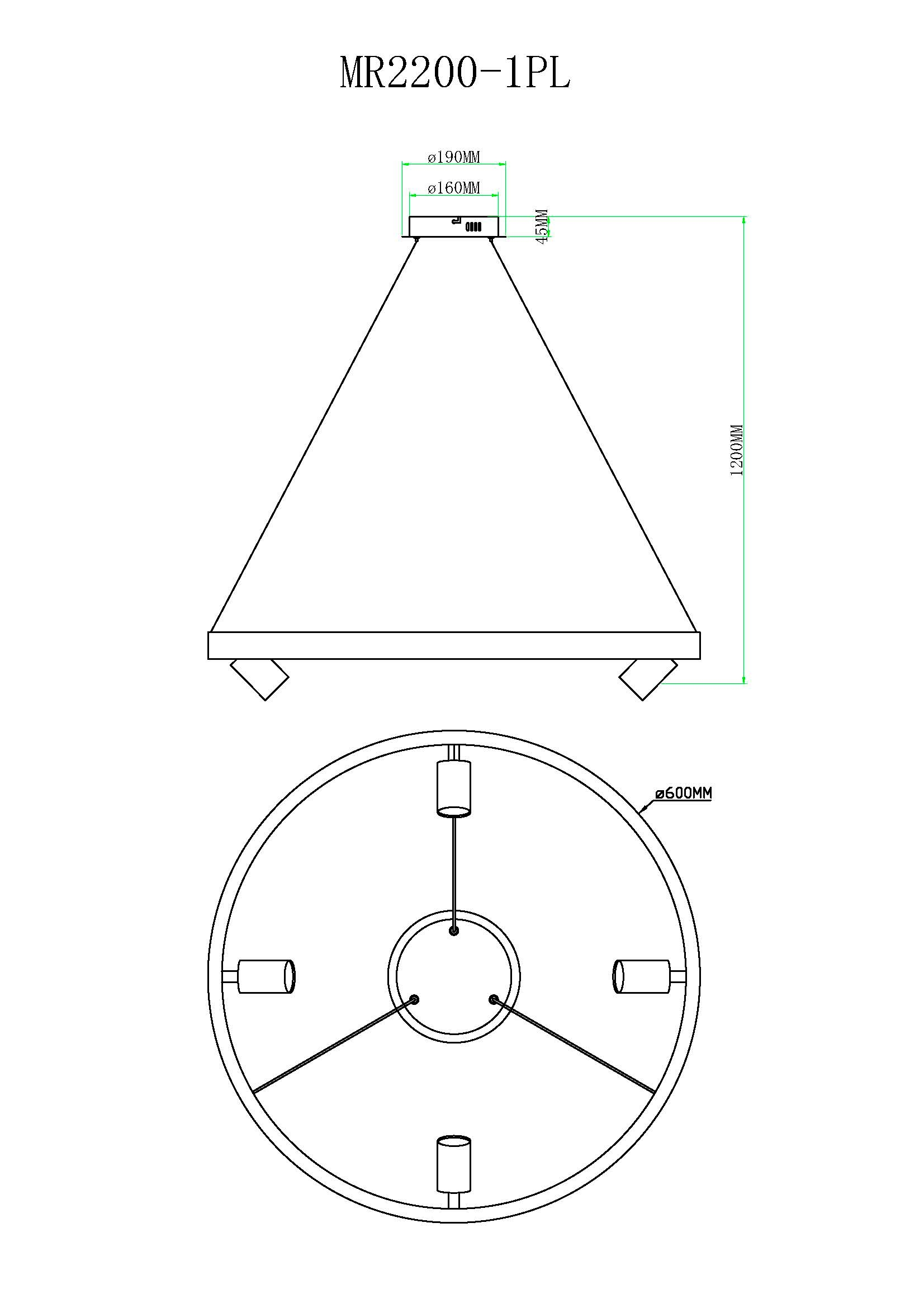 Осветительный прибор выполнен в стиле Модерн. Используются лампочки с цоколем LED мощностью 42 Вт, в количестве 1 шт. Основной цвет модели MR2200-1PL: Чёрный.