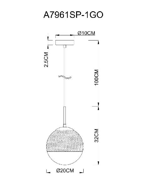 Осветительный прибор сделан в стиле Контемпорари. Задействуются лампочки цоколя E27 мощностью 60 Вт, в количестве 1 ед. Цвет модели A7961SP-1GO: Золотой.